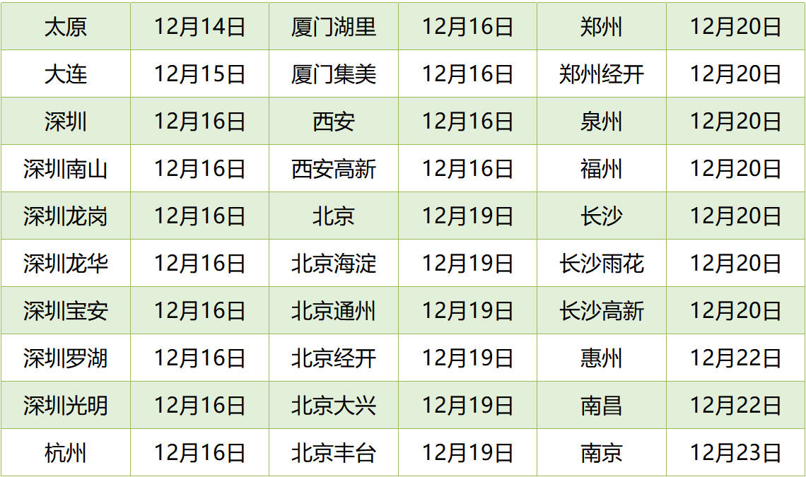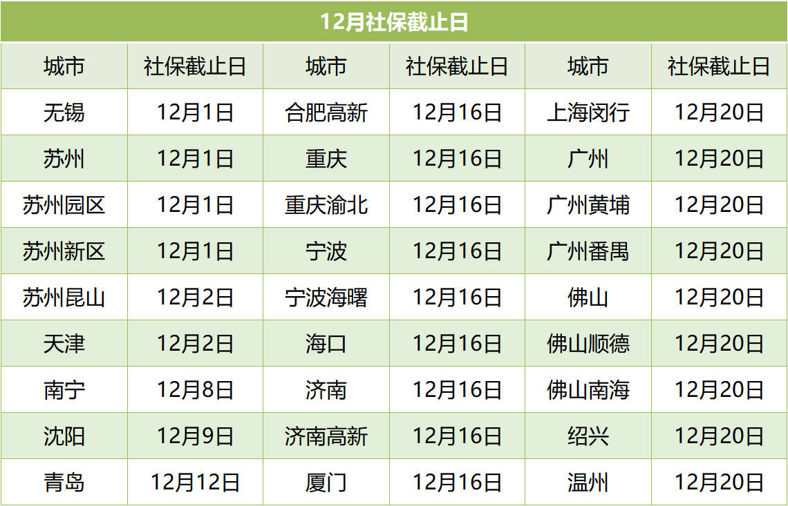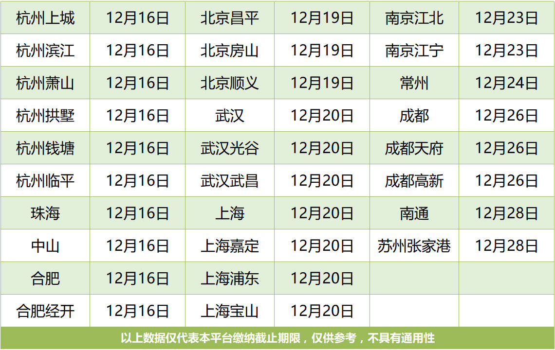 以下为各城市2022年12月参保截止日