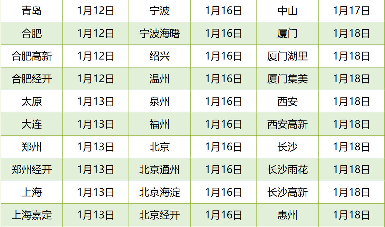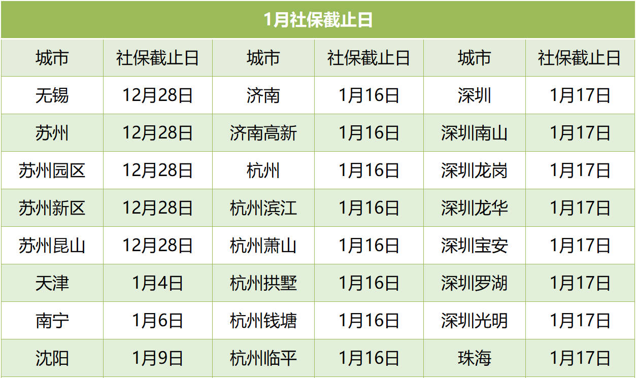 以下为各城市2023年1月参保截止日